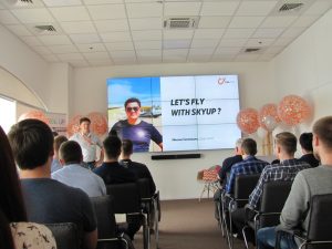 Студенти Аерокосмічного факультету та Факультету аеронавігації, електроніки та телекомунікацій відвідали головний офіс авіакомпанії Skyup Airlines. Вони познайомились з керівництвом компанії, дізнались про тонкощі роботи кожного з департаментів авіакомпанії. Щоб ознайомитися з процесом відбору авіаційних працівників, студентів поділили на команди. Їм Далi