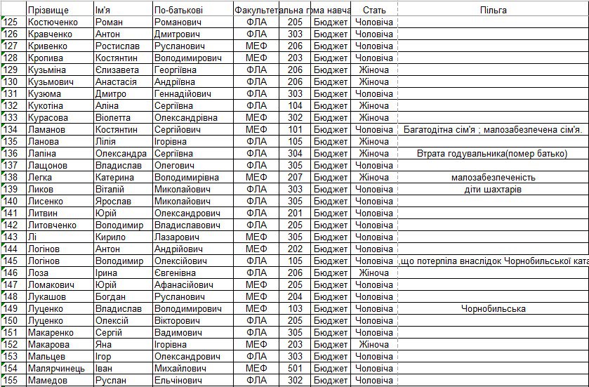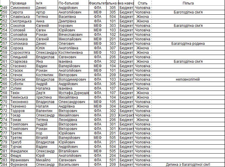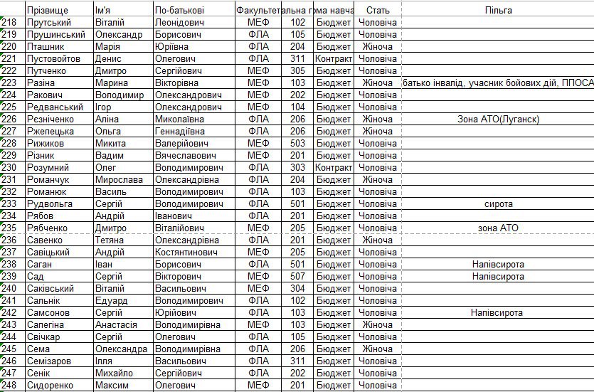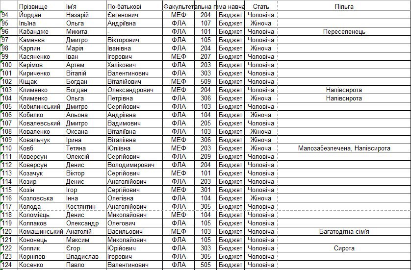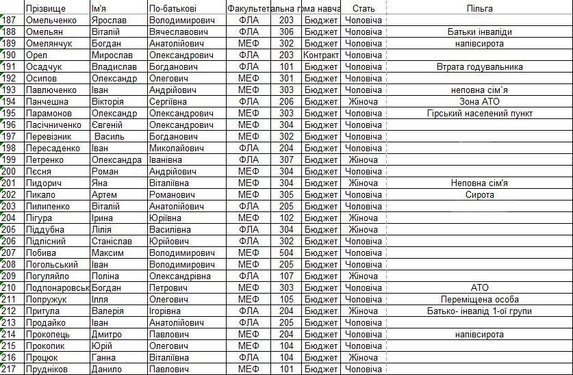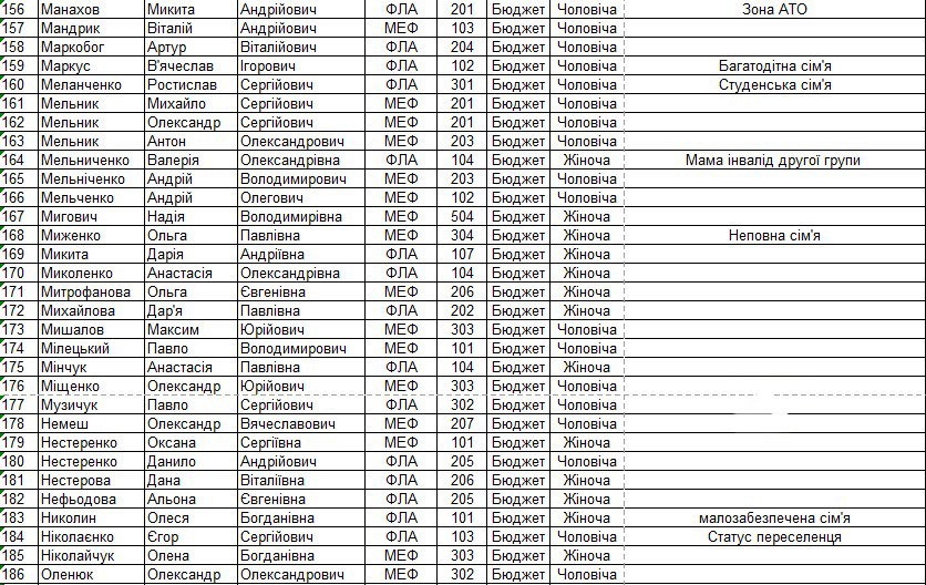 Список студентів ННАКІ рекомендованих на поселення до гуртожитку №7 на 2016-2017 н.р.