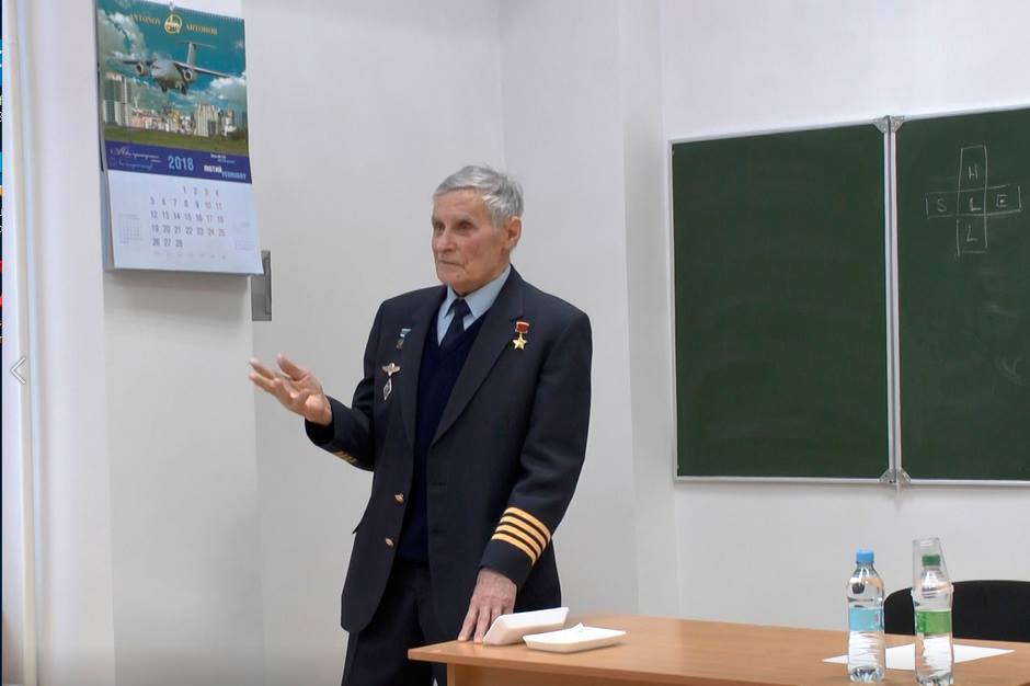 Доповідачами цього разу були ветеран ДП “Антонов”, кандидат технічних наук Леоненко Анатолій Петрович та льотчик-випробувач, Герой Радянського Союзу, Заслужений льотчик-випробувач СРСР Юрій Володимирович Курлін.