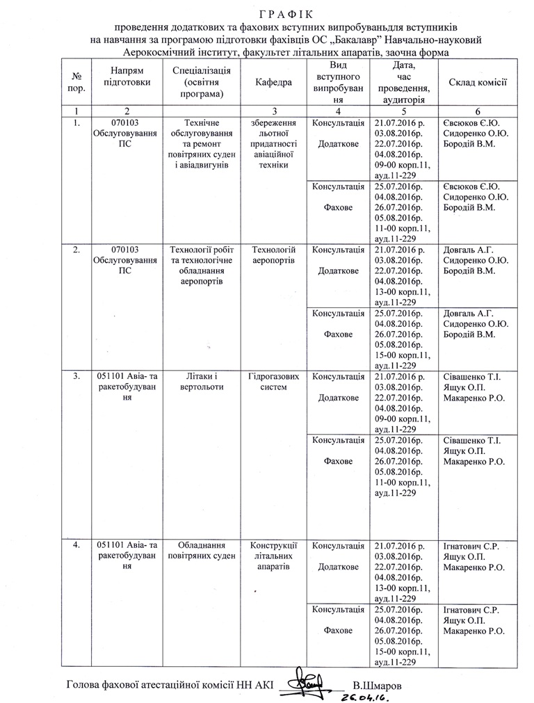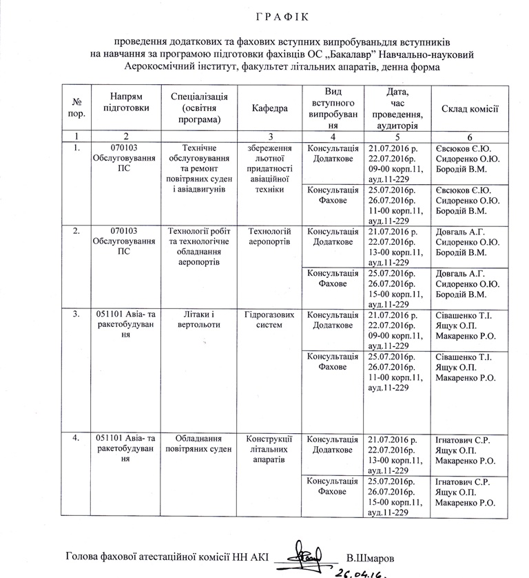 Графік вступних випробувань ОС”Бакалавр”, ОКР”Спеціаліст”, ОС”Магістр”