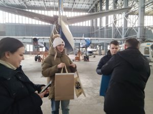Найактивніші учасники “Зимової школи” Аерокосмічного факультету отримали свої призи від спонсорів. Хтось отримав їх поштою, а хтось завітав особисто в навчальний ангар, де мав змогу не тільки отримати подарунки, але й особисто познайомитись із в.о. президента КАІ Ксенією Семеновою та Далi
