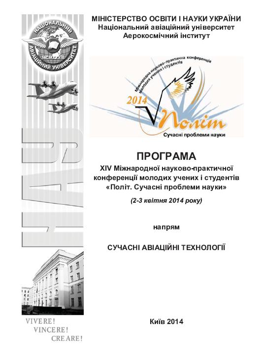 Політ 2014. Програма. Напрям “Сучасні авіаційні технології” Програма XIV Міжнародної науково-практичної конференції молодих учених і студентів “Політ. Сучасні проблеми науки”
