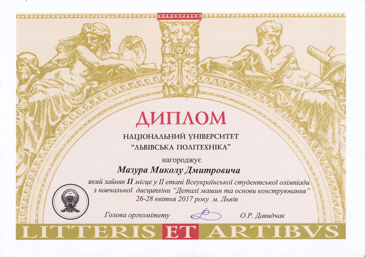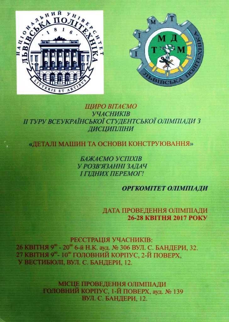 26-28 квітня у Національному університеті «Львівська політехніка» відбувся другий етап Всеукраїнської олімпіади з дисципліни «Деталі машин і основи конструювання». У ньому взяли участь студенти вищих навчальних закладів Києва, Харкова, Миколаєва, Мелітополя, Кривого Рогу, Сум, Рівного, Тернополя, Луцька, Івано-Франківська і Львова.