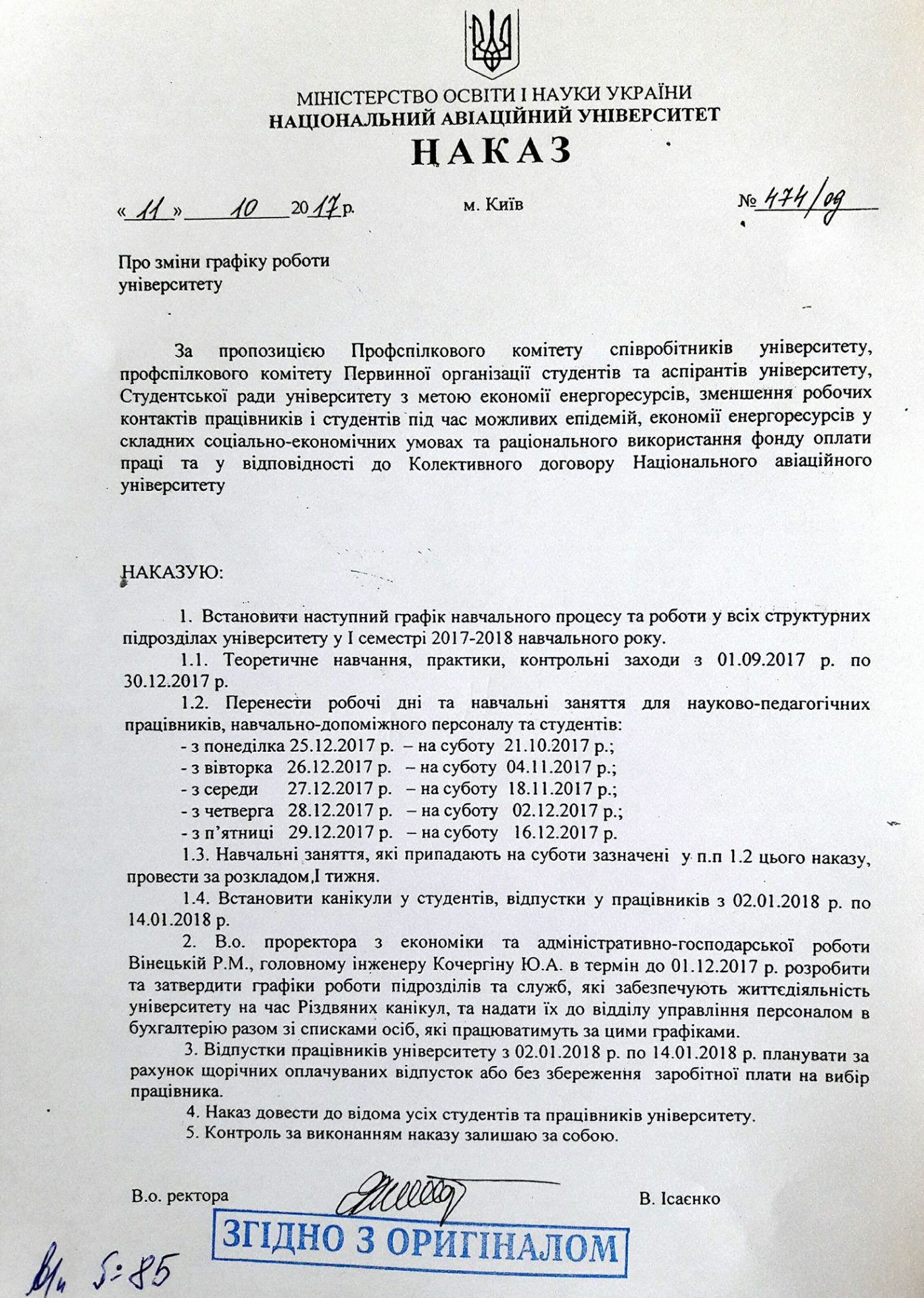 • Графік зміни роботи університету
