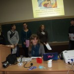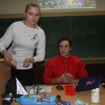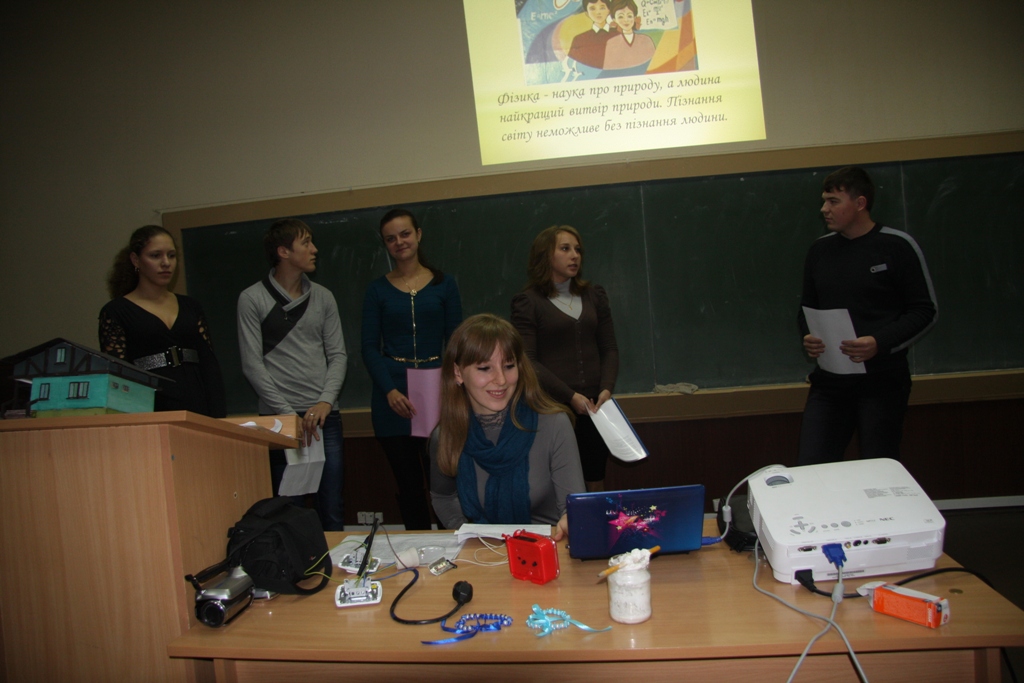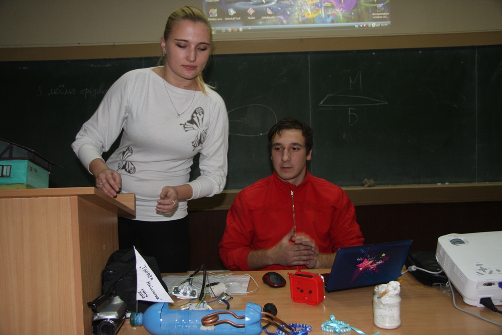 Увазі присутніх були представлені цікаві студентські роботи: світлодіодна підсвітка клавіатури, годинник, що працює на сонячній енергії, вирощений власноруч кристал, човен, який плаває за рахунок теплової енергії та багато іншого. Скакун Наташа розповіла про те, що таке «Wi-fi» зв’язок, а Вітошко Олександр доповнив як можна ефективно та недорого підсилити цей зв’язок. За якими фізичними законами працює людське тіло презентували студенти Шевчук Павло Семко Артем, Муха Ірина, Скакун Наталія, Селюк Марина та Трясій Олена та навчили всіх присутніх вимірювати тиск людини за особливостями почерку.