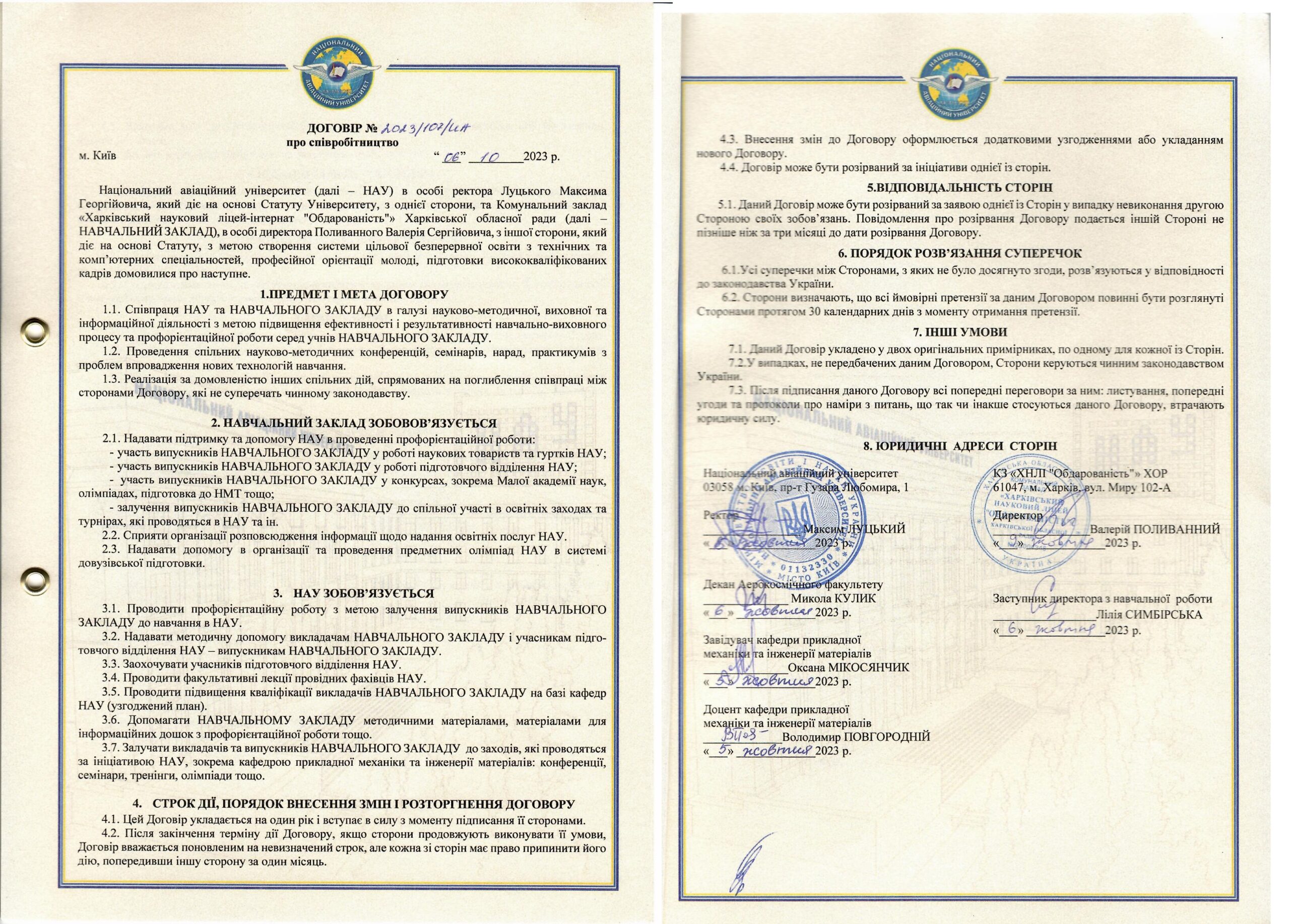 Договір з КЗ “Харківський науковий ліцей-інтернат “Обдарованість””