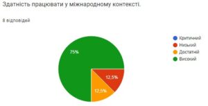 Випускників високо оцінили за креативність, Націленість на кінцевий результат, Здатність працювати в колективі, ефективно представляти себе й результати своєї праці. Відмічено переважно високий рівень Націленості випускників на кар’єрне зростання і професійний розвиток, Рівень ерудованості, загальної культури, комунікабельності, Здатність працювати у міжнародному контексті. Відзначено також високий Рівень навичок використання інформаційних і комунікаційних технологій.