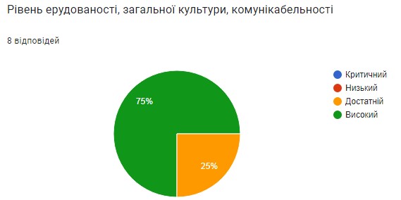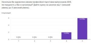 Роботодавці відзначили високий рівень загальнотеоретичної підготовки, рівень базових (професійних) знань та рівень навичок стратегічного мислення випускників.