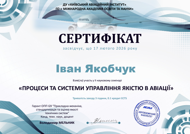 ІІ науковий семінар «Процеси та системи управління якістю в авіації»