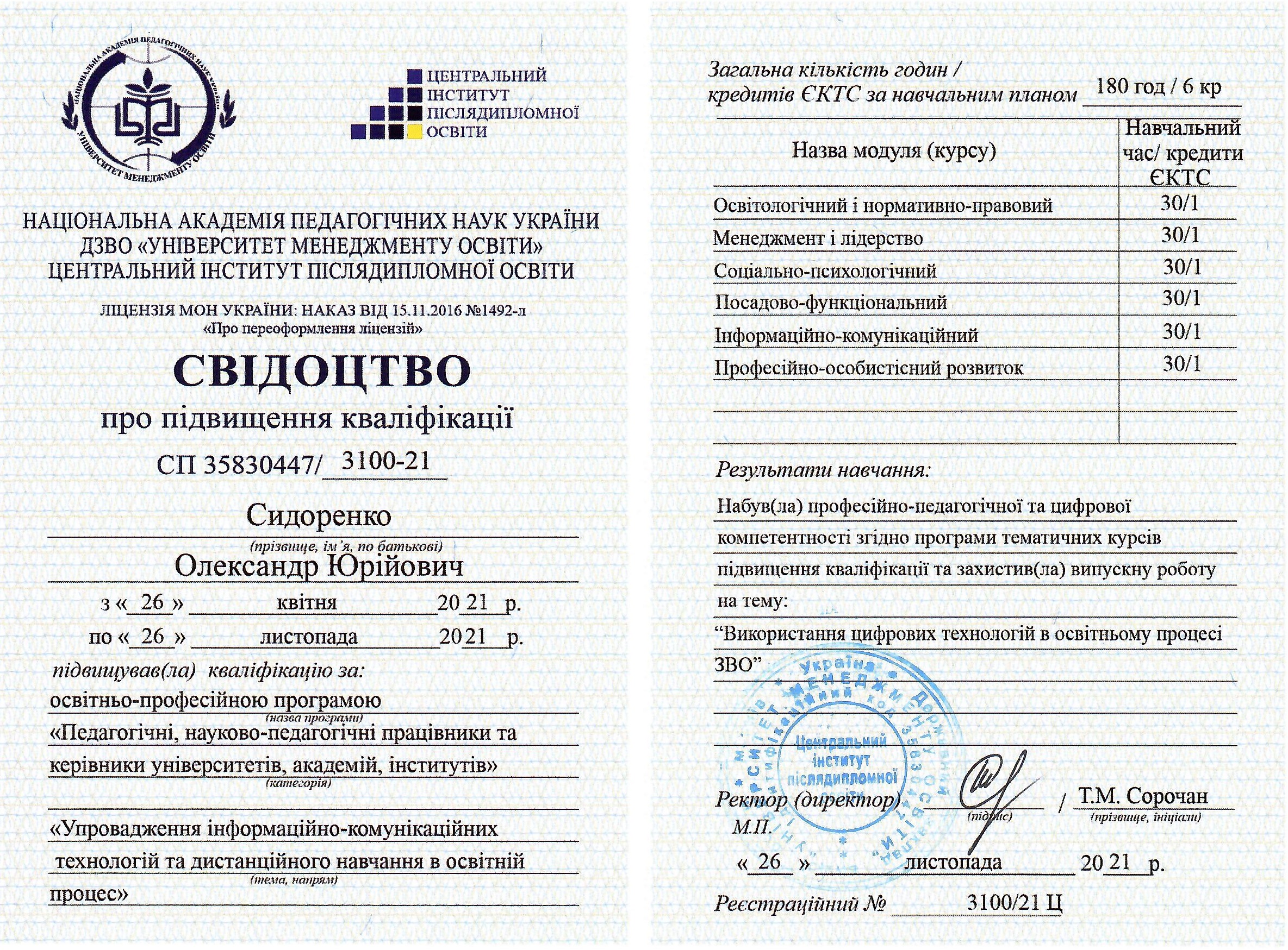 СИДОРЕНКО Олександр Юрійович