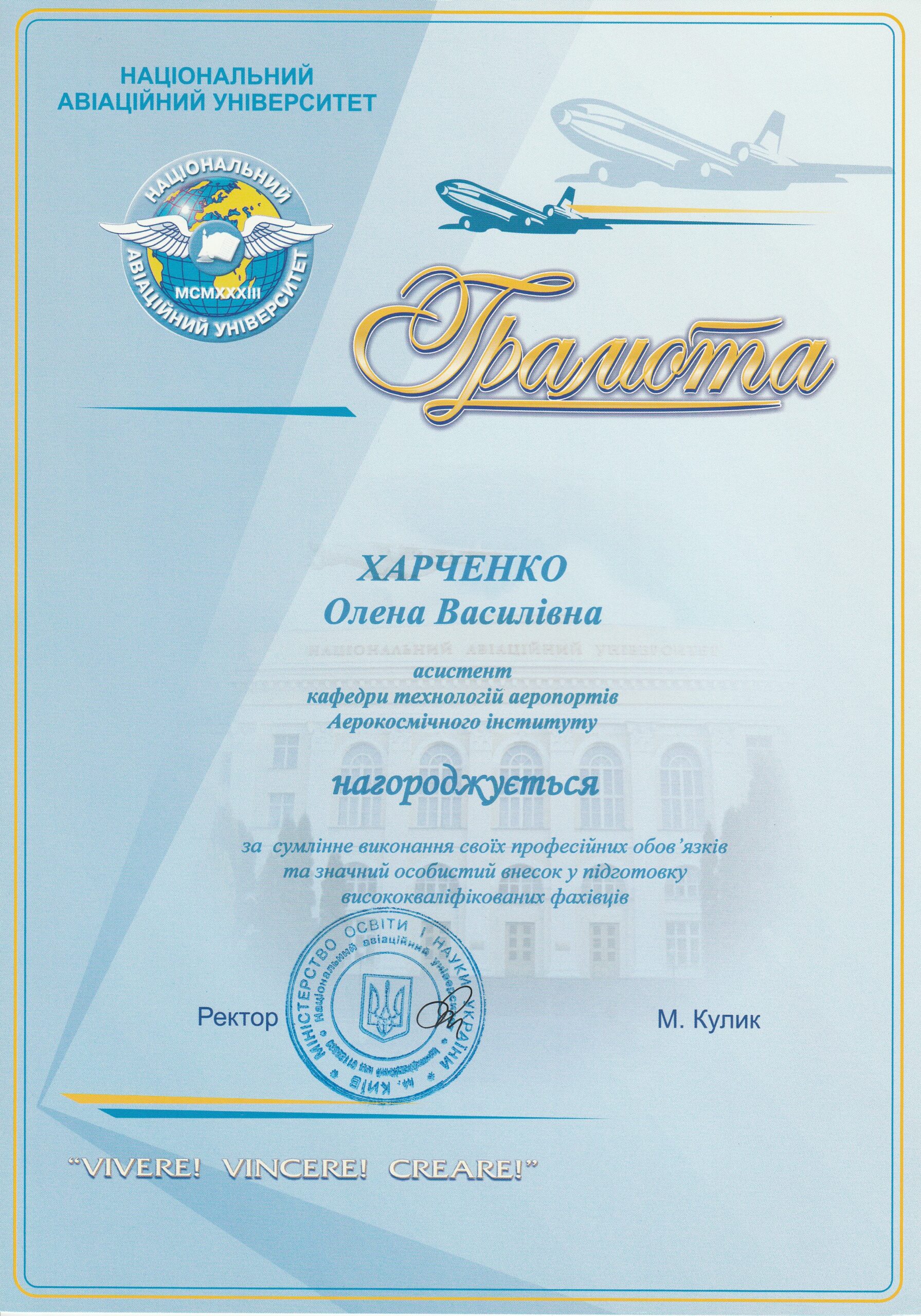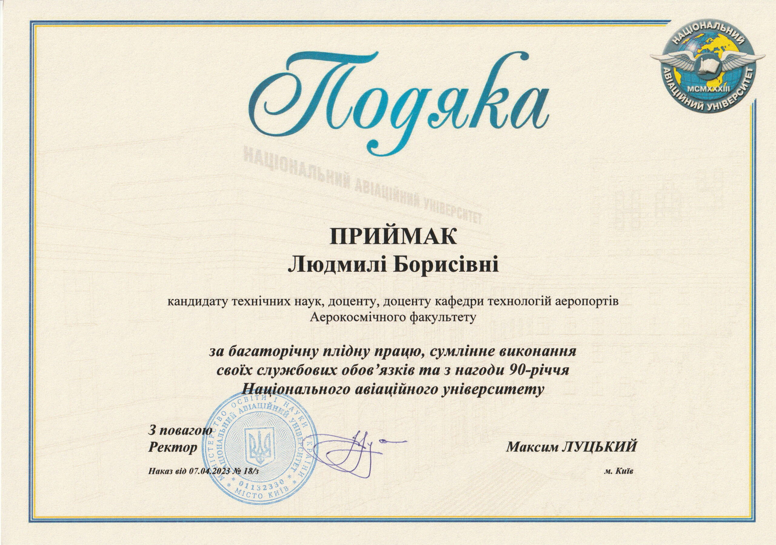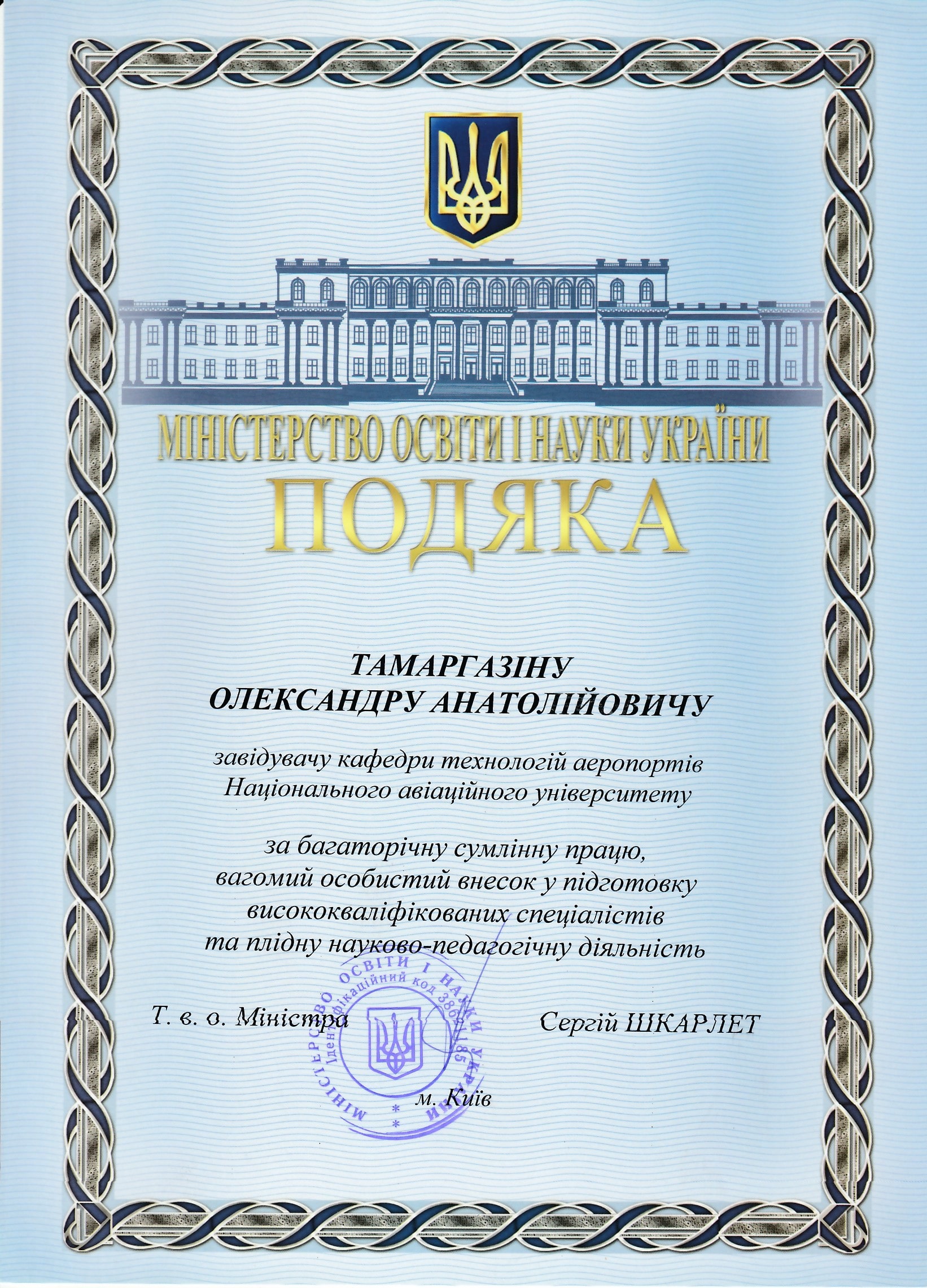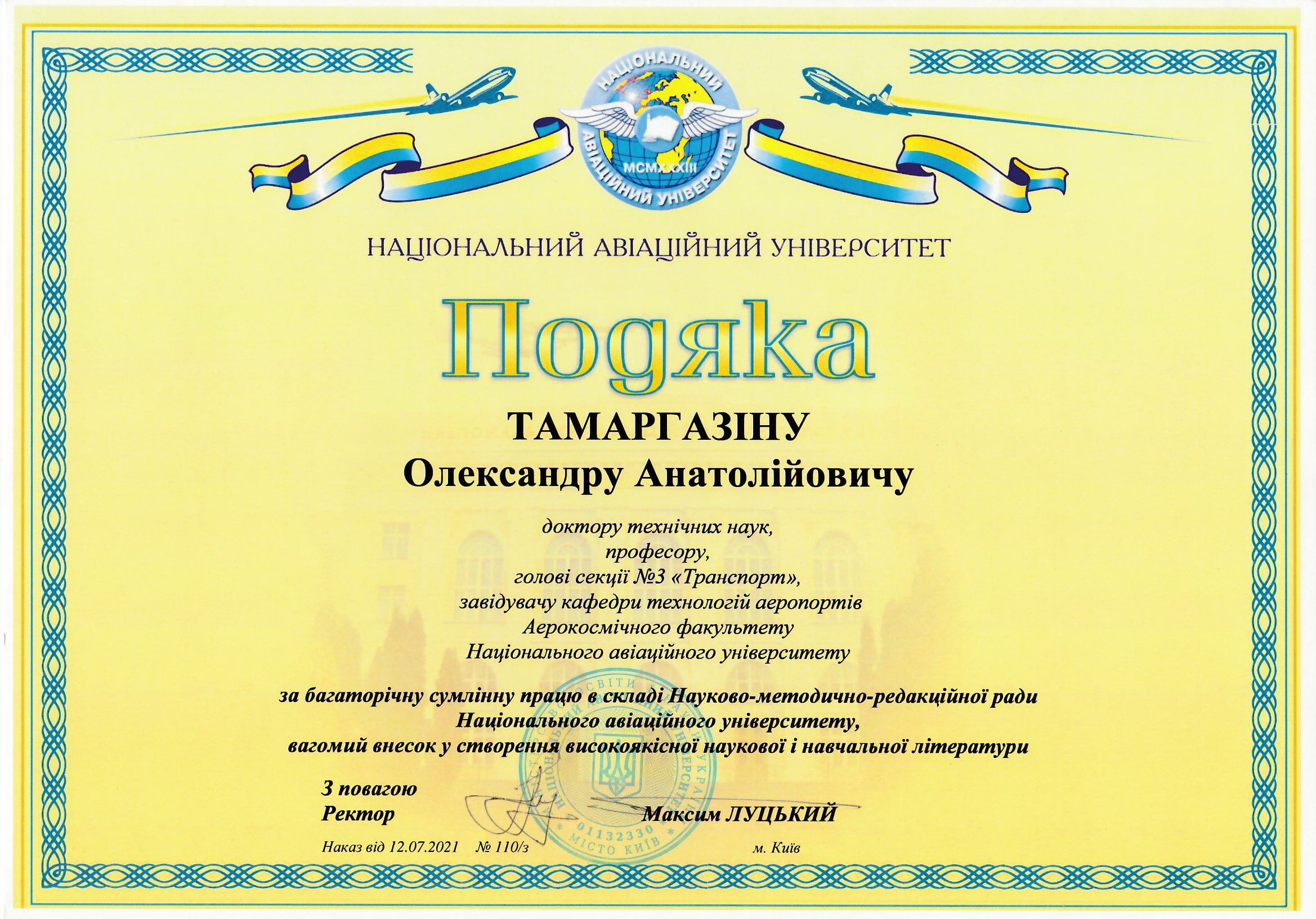 Отримав звання доцента кафедри технологій аеропортів 23.12.2011 р.