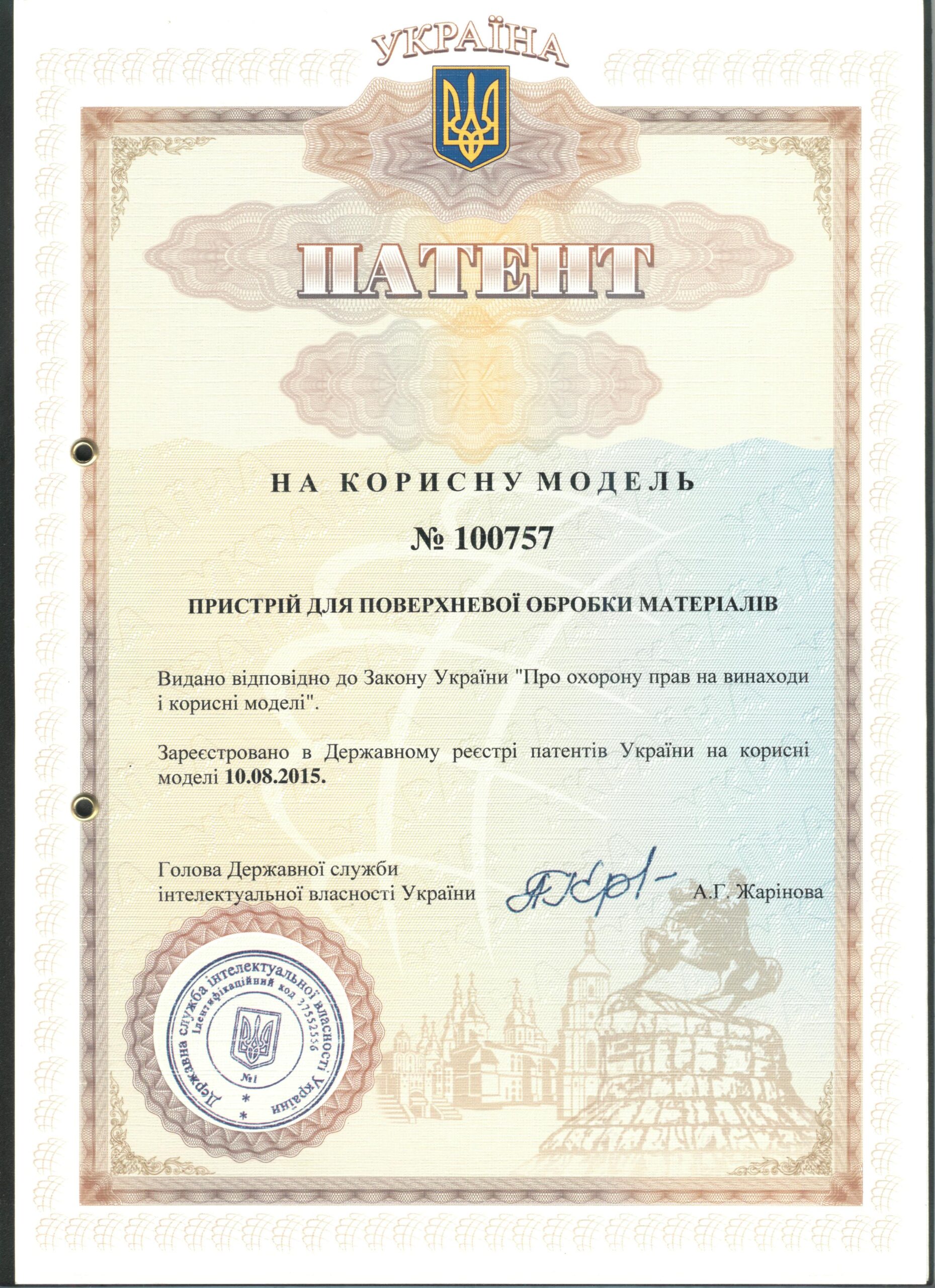 Відповідальний виконавець НДР 595ДБ09 «Технологія формування ефективної об’ємної мікрогеометрії робочих поверхонь лопаток ГТД», лабораторія новітніх триботехнологій, 01.01.2009-31.12.2010 рр.