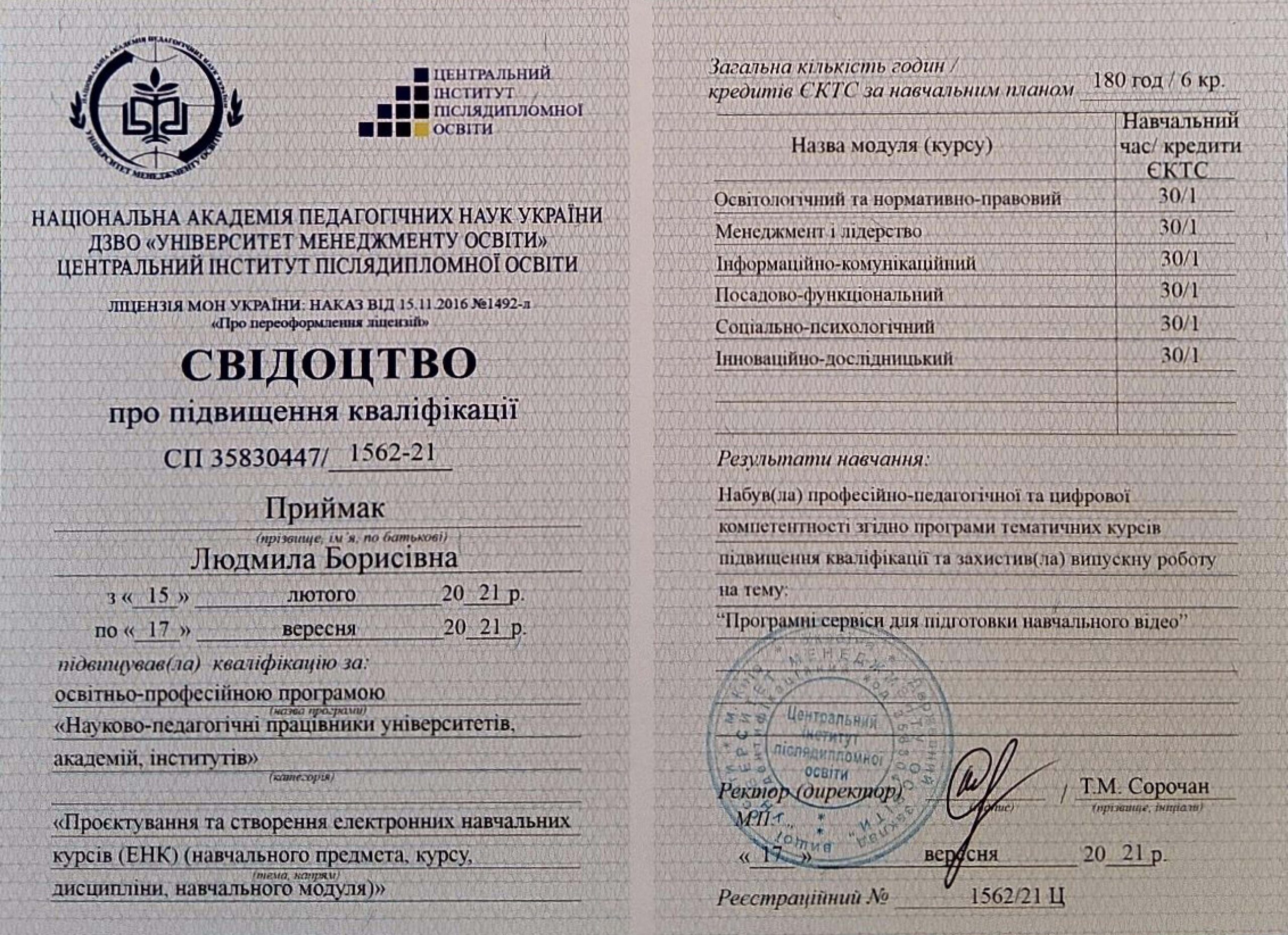 ПРИЙМАК Людмила Борисівна