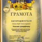 Окрім командних змагань був проведений відбір в індивідуальні змагання учасників суперфіналу. Серед 47 учасників були представлені 10 кращих студентів для супергри. Серед них був наш студент Юрій Литвин. Учасники суперфінала отримали грамоту суперфіналіста і пам’ятну медаль до 120-річчя НТУУ «КПІ» ім. Сікорського. Студенти кафедри ГГС виступили на висоті. Особлива подяка студенту магістратури Юрію Литвину.