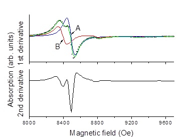 Резонансний спектр плівки, записаний при 70ОС в аустеніті (перша і друга похідна поглинання).