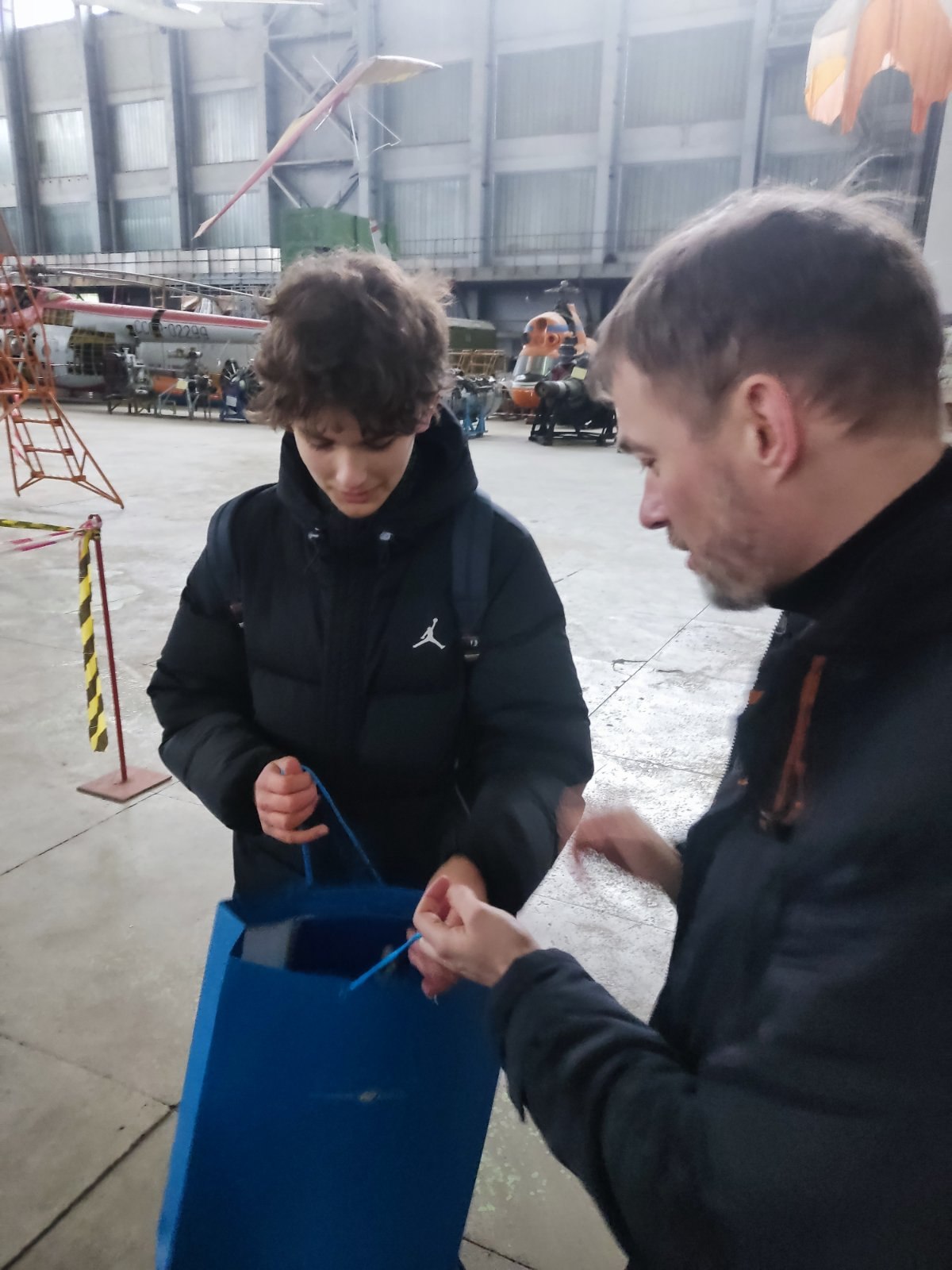 . Хтось отримав їх поштою, а хтось завітав особисто в навчальний ангар, де мав змогу не тільки отримати подарунки, але й особисто познайомитись із в.о. президента КАІ Ксенією Семеновою та деканом АКФ Святославом Юцкевичем. Як приємний бонус – екскурсія в ангарі