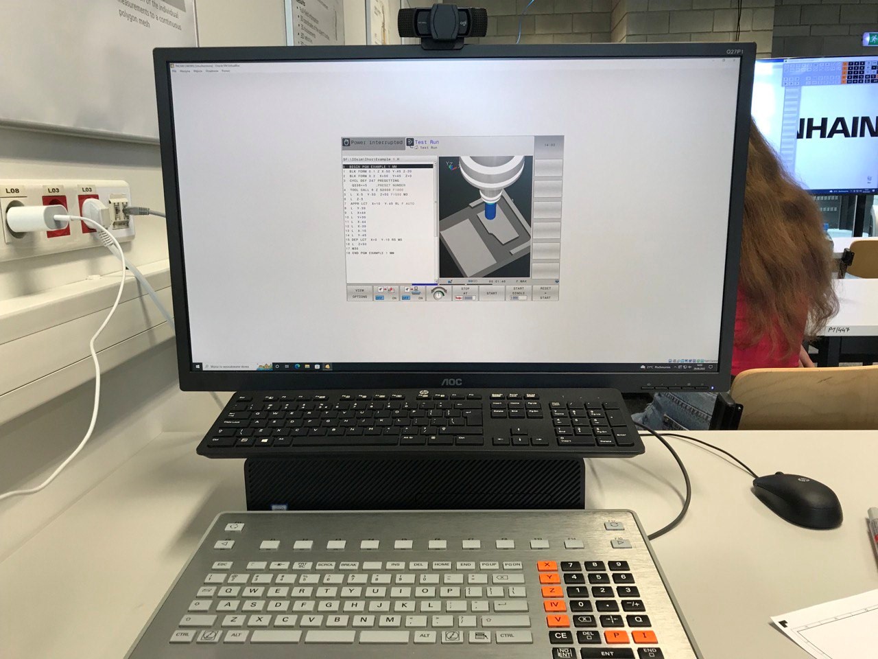 Як це виглядало? Ми займали місця за комп’ютерами, які були підготовлені для роботи з тренажером та вводили команди. Студентам давали креслення деталі, яку мав виготовити станок, після чого студенти вказували через програмний код алгоритм дій, який потрібно відпрацювати станку.
