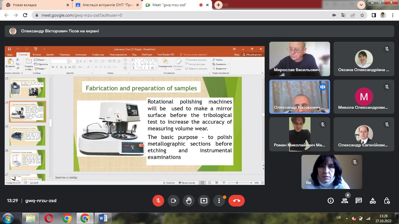 27 жовтня 2022 року на кафедрі прикладної механіки та інженерії матеріалів в онлайн–режимі відбувся науково-практичний семінар «Триботехнічні матеріали і методи підвищення зносостійкості» згідно плану проведення наукових, науково-технічних, науково-практичних конференцій і семінарів у Національному авіаційному університеті.