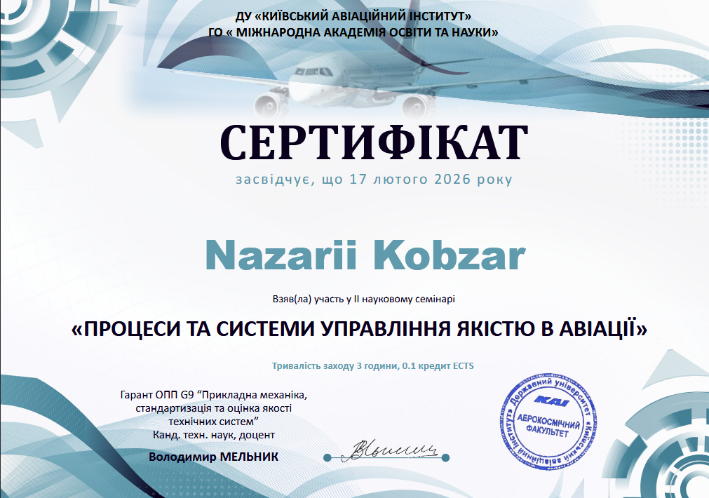Запрошуємо ІІ науковий семінар «Процеси та системи управління якістю в авіації»