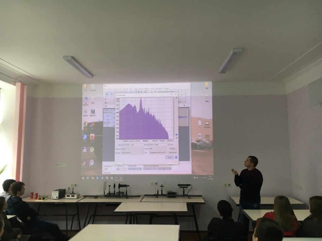 Екскурсії навчальними аудиторіями та лабораторіями «Електромагнетизм», «Оптика» та «Механіка»кафедри загальної та прикладної фізики супроводжувалися пізнавальними фізичними демонстраціями, презентаціями і майстер-класами, проведеними доцентами Т. Сакун, А. Марінченко та І. Бородій(«Явище електромагнітної індукції. Струми Фуко»),О. Грідякіною і Г. Бордюг («Як рідкі кристали змінюють світ») та студентами В. Донцем(«Принцип дії і застосування тепловізорів»), Д. Євтушенком і В. Сич («Використання програм відео- та аудіоаналізу у фізичних дослідженнях»), І. Скрипченком та Д. Скрипалем («Гармата Гауса»).