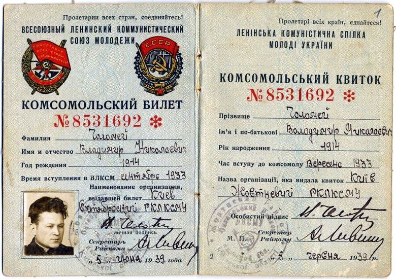 У вересні 1933 року Володимир Челомей вступив до лав Ленінської комуністичної спілки молоді України, про що свідчить комсомольський квиток, виданий Жовтневим райкомом ЛКСМУ (Жовтневий – нині Солом’янський район міста Києва).