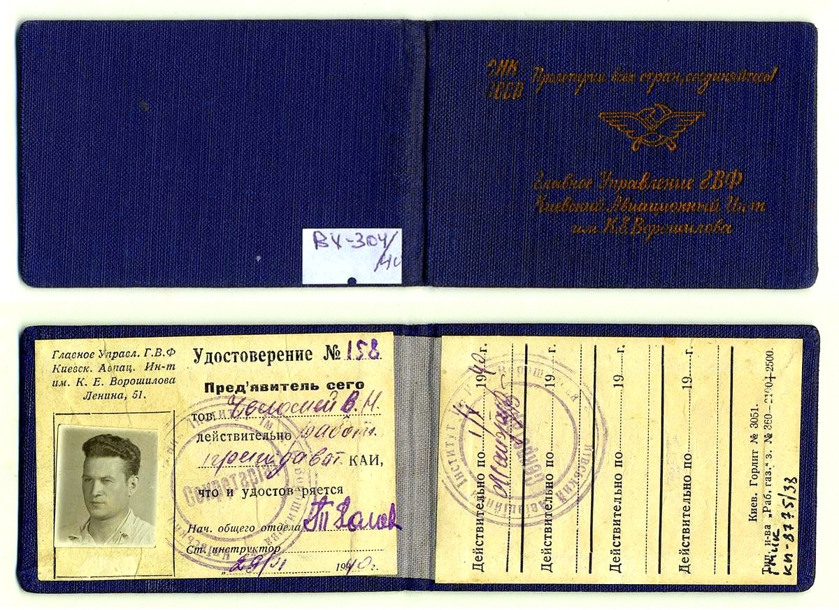 Несподіванкою для дослідників в цій історії про київський період Володимира Челомея став документ, виданий 29 червня 1941 року, про те, що «Пред’явитель сего тов. Челомей В.Н. действительно работает в КАИ в должности преподаватель».