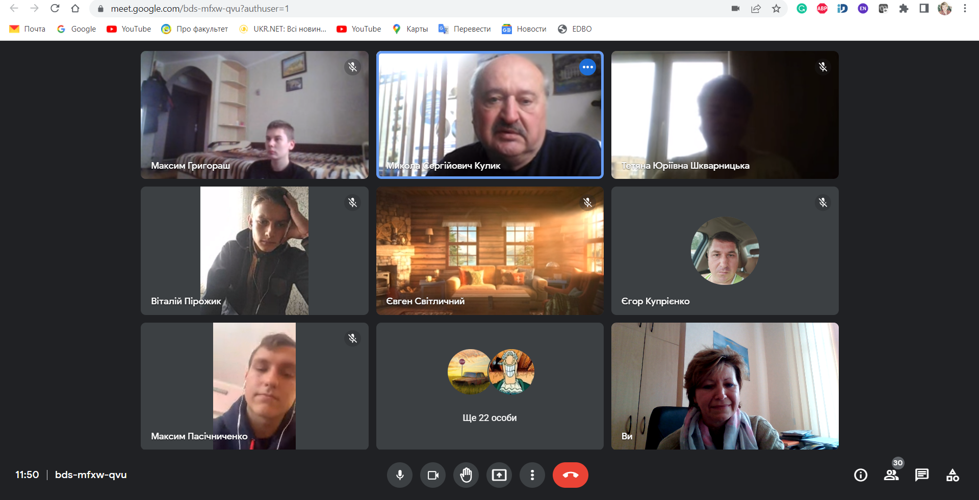 В умовах воєнного стану Аерокосмічний факультет провів зустрічі – знайомства першокурсників з керівництвом факультету в онлайн форматі на платформі meet.google.com